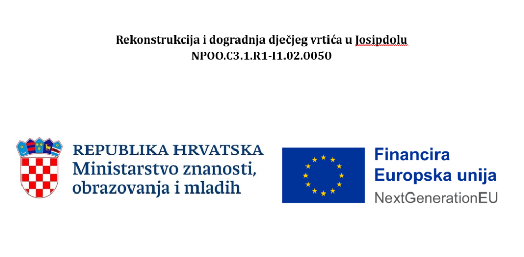 Slijedi sklapanje ugovora o javnoj nabavi radova i opreme, uvođenje izvođača u posao te konačno – izvođenje radova! Veselimo se ostvarivanju ovog velikog projekta za bolju i ljepšu budućnost naših mališana i osiguravanje dodatnih radnih mjesta unutar Općine Josipdol!
